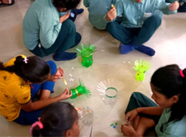 We organised a day full of fun and learning by teaching our children how to make beautiful flowers (that can be used for decoration) by using waste materials such as plastic. With such activities we aim to make our children more sustainable and future ready.